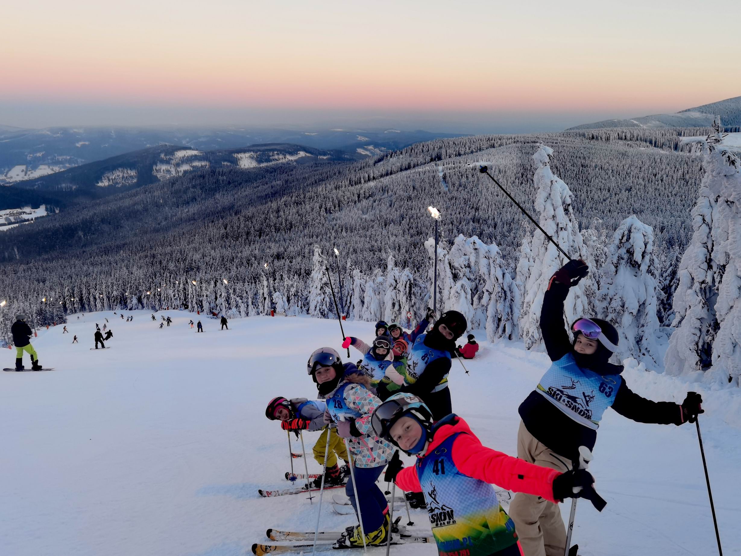 – popołudniowo-wieczorny: luźniejszy czas na stoku pod okiem instruktorów, jazda dowolna, formy zabawowe z wykorzystaniem elementów szkoleniowych