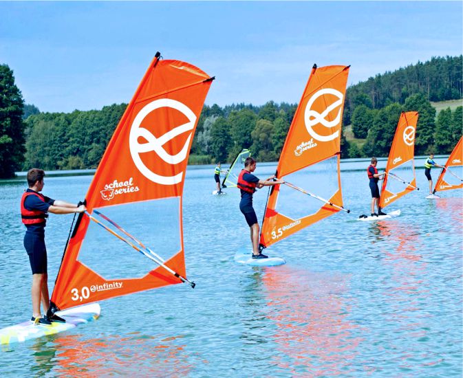 W trakcie naszych weekendowych spotkań prowadzimy teoretyczne i praktyczne szkolenie z windsurfingu zarówno na poziomie nauki jak doskonalenia umiejętności. Dodatkowo uczestnicy będą mieli zajęcia pływania na deskach SUP oraz kajakach pneumatycznych, podczas których poznają i opanują technikę poprawnego wiosłowania, sterowania oraz samoasekuracji przy wywrotce.