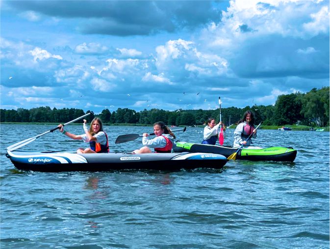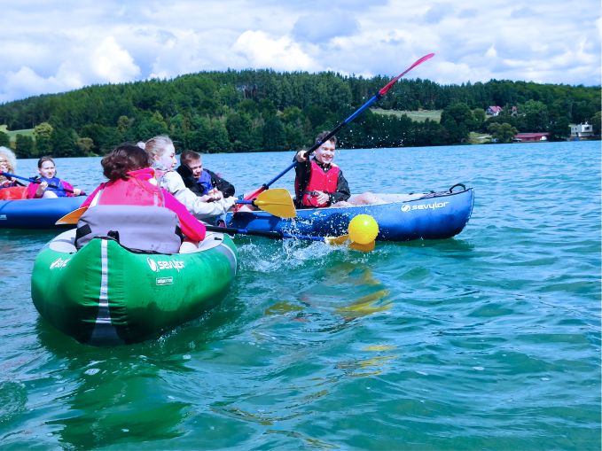 Jeśli będą odpowiednie, sprzyjające warunki atmosferyczne i wystarczająca temperatura wody w jeziorze, alternatywnie będziemy mogli zrealizować zajęcia z pływania w wodach otwartych czy podstawowych elementów ratownictwa wodnego.