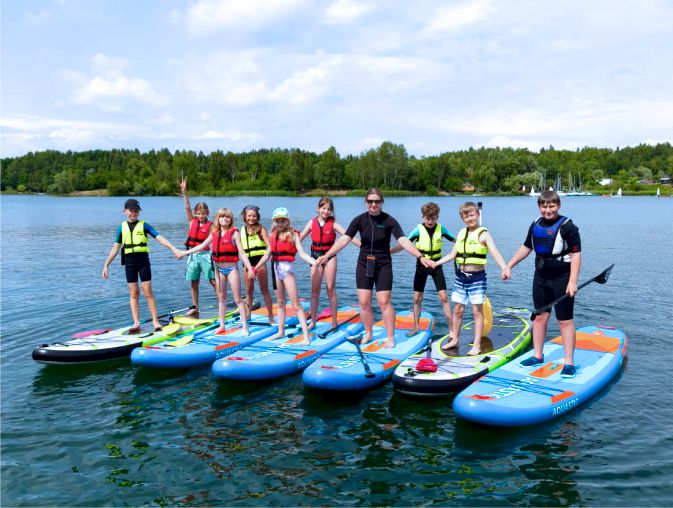 Podczas naszych weekendowych spotkań będziecie mieli okazję poznać i nauczyć się nowych umiejętności zarówno z zakresu różnych sportów wodnych (windsurfing, deski SUP, kajaki) jak i łucznictwa czy technik survivalowych. Ufamy, że dzięki temu Wasza aktywność w czasie wolnym czy wakacji będzie jeszcze bardziej atrakcyjna i ciekawa.
